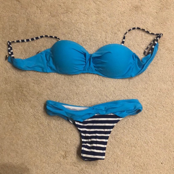 Small striped Bikini NEVER BEEN WORN, built in cups, removable straps, B/C cup, small bottoms