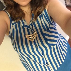 This top is a statement all itself! Bright blue stripes. Back slit. Gold and blue buttons. Worn twice.