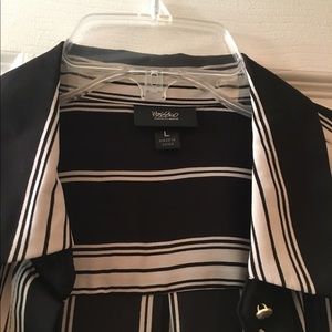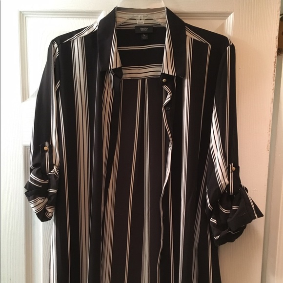 Black and white vertical striped button down top. Never worn.
