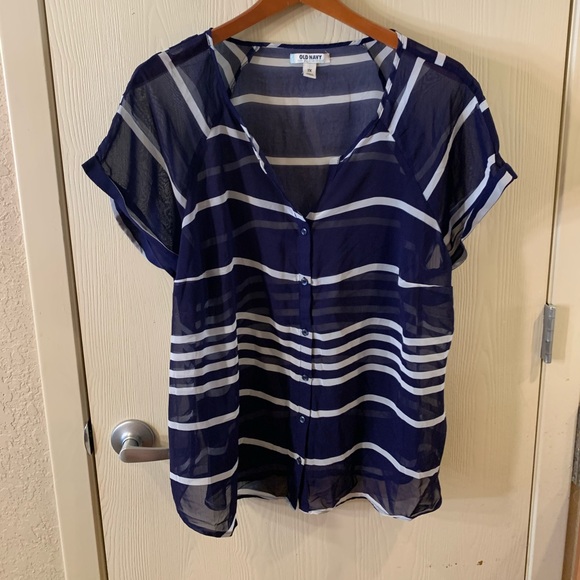 Chiffon blouse. Excellent used condition. Navy and white