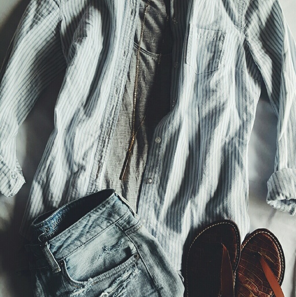 Striped button down Mossimo top. Runs small. Super cute layered in fall with boots. Good condition.
