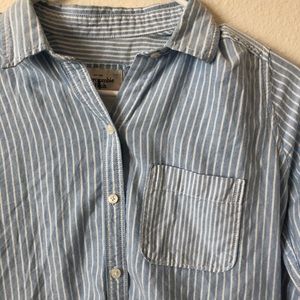 Striped button up blue and white in good condition and medium thick material