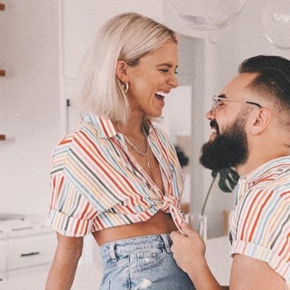 Striped button up top