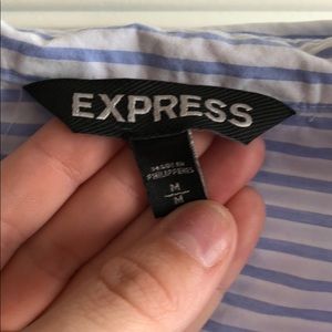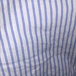 Super chic, classic blue and white striped button up. I wear it with skinny jeans and cute brown thigh high boots.