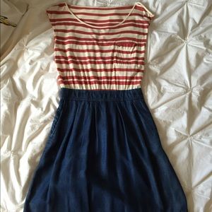 Super comfy casual dress. Striped top, bottom chambray. Side zip. Only worn once.