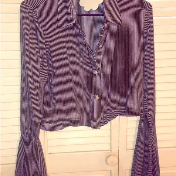 Striped crop button down