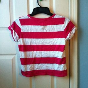 Pink and white striped crop top with small pocket.