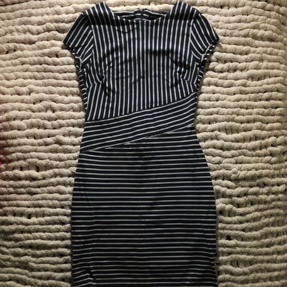 Navy blue and white striped dress, no damage, size 4, petite