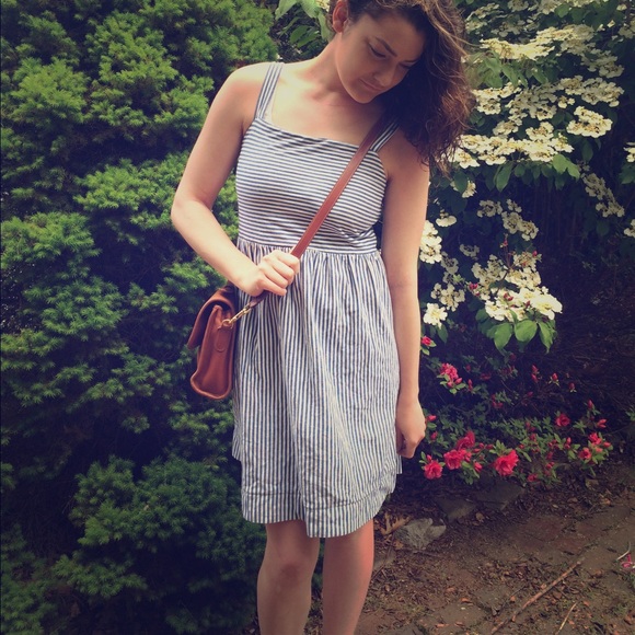 Blue & white striped dress by Ann Taylor Loft. Machine washable. 100% cotton.