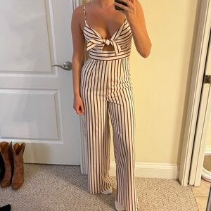 Striped front-tie jumpsuit