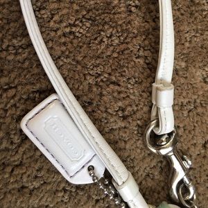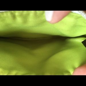 Multicolored coach wristlet. Colors include purple, blue, orange, green, red, white. Perfect for spring or summer. Some staining (honestly think it is makeup and can come clean) which is pictured. Zipper top as well as smaller buckle pocket opening.