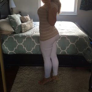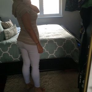 Beige and white striped hooded top has beautiful flower detail on front. Extremely comfortable material, 100% cotton! Similar look and quality as Free People. Worn only a few times. In excellent condition! Comes from a smoke-free home😍