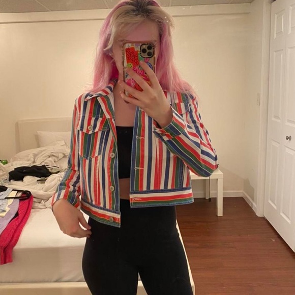 Striped forever21 denim jacket. Super cute and has never been wore out