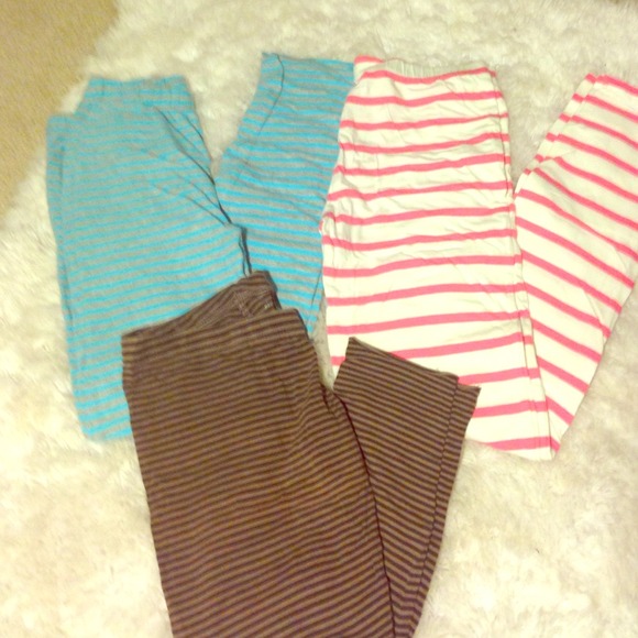 Blue&Grey, Pink&White, Brown&Chocolate striped leggings. Bundle all for $13 or $5ea.