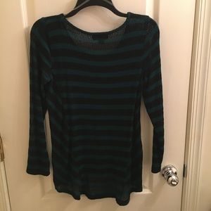 Black and teal striped sweater. Very thin/see through. Great for layering