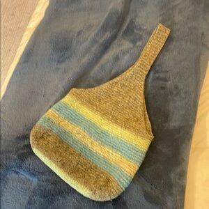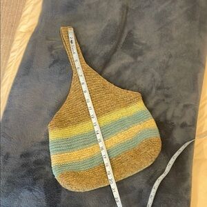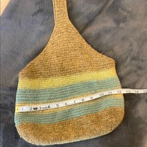 Striped olive green and Blue wool Woven Shoulder Bag handmade