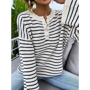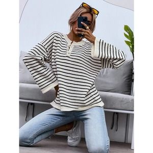 Striped oversized Button Front Sweater cream black minimalist preppy