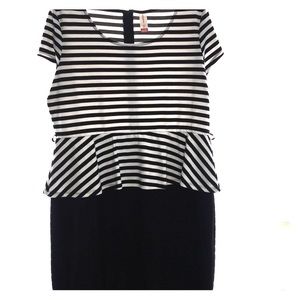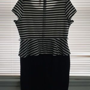 No boundaries peplum dress. Never worn. Black and white striped on top and bottom is black. Size is XL. 96% polyester and 4% spandex.