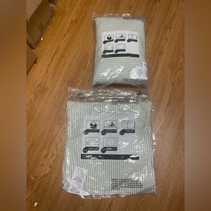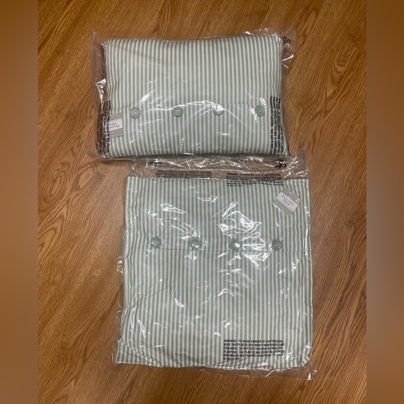 You are buying a pillow bundle Sizes 12”x18” &18”x18” Green & white stripes Brand new