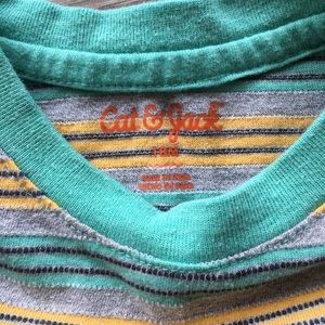 Yellow and light blue with grey back ground. Good used condition. Size 18 months