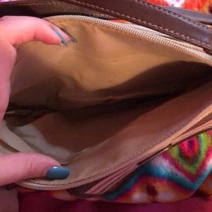 In good used condition, shows a little wear as shown in the pictures. Built in wallet! Lots of compartments.