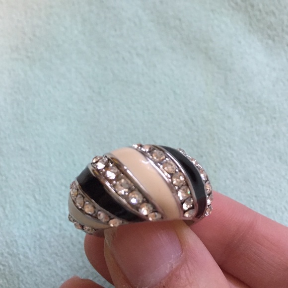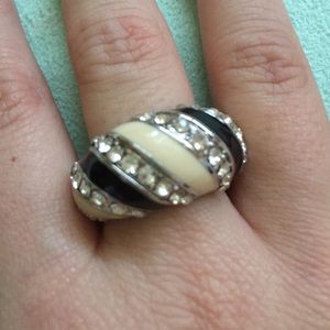 Silver metal ring with stripes and rhinestones, believe it is an 8 ring size