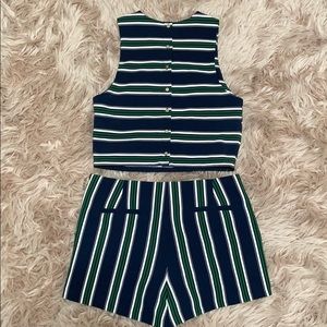 Cropped top is size M & shorts are size 30, gold buttons on the back of top and gold zipper on shorts, colors; navy blue/white/green. sold together