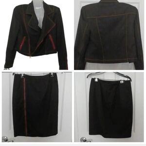 rarely worn. skirt and jacket has lining. decorated with zippers. very soft fabric. fixed lining issue.