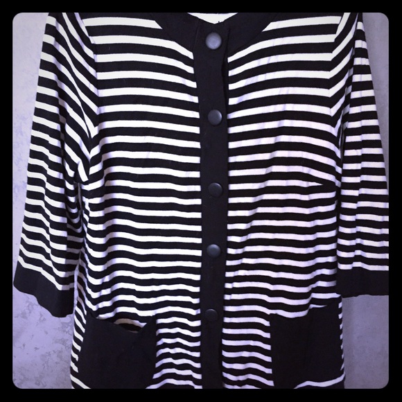 Never worn light weight jacket black and white striped flares out at waist