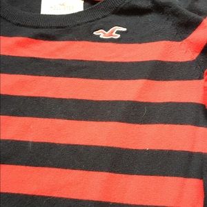 Hollister sweater. Wide slightly boat neck. Navy and Red striped.