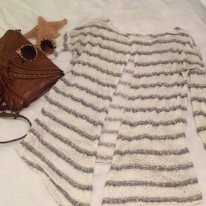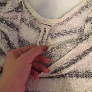 White and gray stripped sweater.