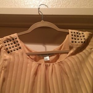 Striped tan top with studs on the shoulders quarter length sleaves