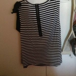 Black and white striped tank with a big bow on the shoulder it has a zipper on the middle of the back of the shirt