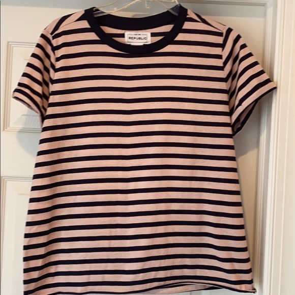 Navy and pink’ish/mauve stripes -Rolled up short sleeves