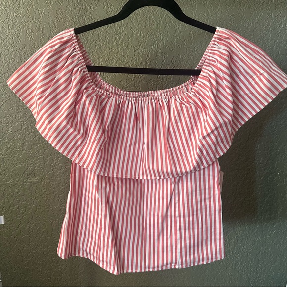 Pink and white striped off the shoulder top pastel color