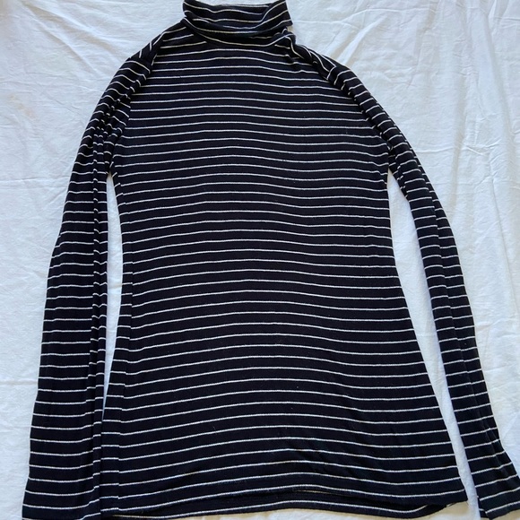 Black and white striped turtle neck. Long sleeves and longer fit with comfortable material. Worn multiple times but in good condition.
