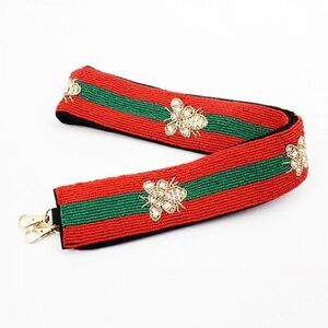This strap is EVERYTHING! It is hand beaded to perfection and would elevate any classic bag you have to give it an extra pop. This is great option for a replica of the designer version with out the designer price tag. It is heavy duty and SO CHIC! The straps have gold lobster claw attachments and cloth backing. Spot clean this item only. The strap is 41" Long.