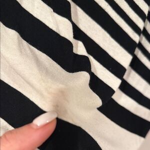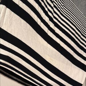Stylish asymmetrical tunic top with black and gray stripes. Perfect for a chic look. Used but good condition