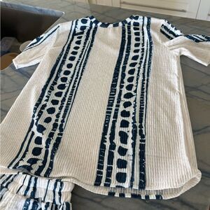 Stylish and comfortable, these women's Bermuda shorts feature a striking blue and white striped pattern. Perfect for casual outings, they offer a relaxed fit and a chic look. They come with a matching top and they are size small. I bought them online and they do not fit me. The company was overseas so it was more expensive to return them.