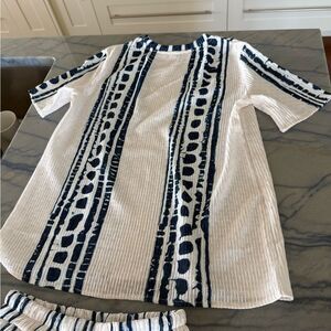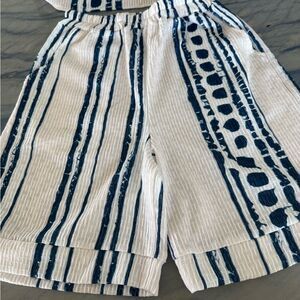 Striped Blue and White Women's Bermuda Shorts and matching top. Never worn. Smal