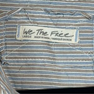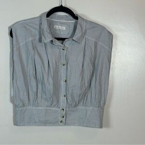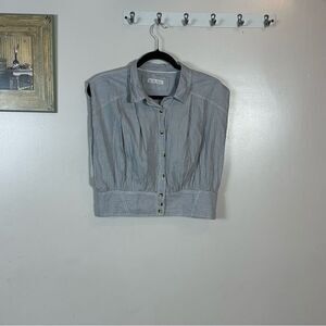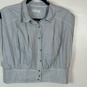 Stylish striped button-up blouse with a classic collar. Features a chic design with buttons down the front.
