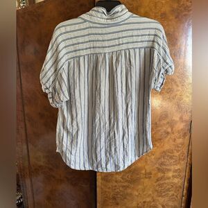 Casual striped button-up shirt. Features short sleeves and a classic collar. Perfect for everyday wear.