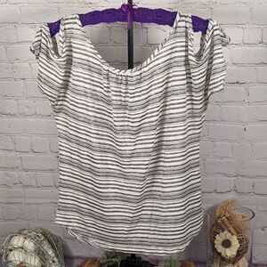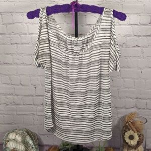 Black & White Stripe Cold Shoulder Short Sleeve Top. Scoop neck.