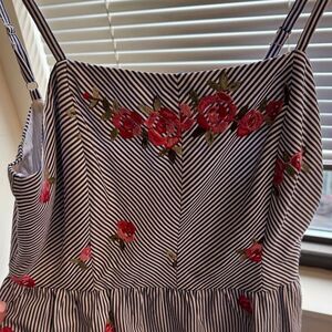 Striped Dress with Floral Embroidery