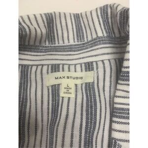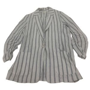 Ladies super cute blue and white striped green 3/4 sleeve lightweight linen blazer style jacket by Max Studio. Excellent condition. Ladies size large.