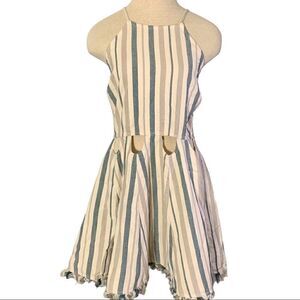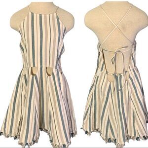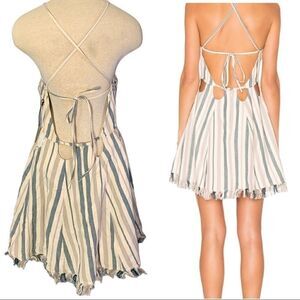 Revolve Tularosa Helix Dress Striped Cross Back Halter Neck Distressed Raw Hem