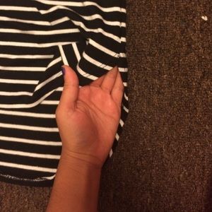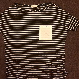/The shirt is a little higher in the front than it is in the back, that's the way it's styled// never worn, just washed// Size Small but it fits loose (made to be loose)// will fit SMALLS, MEDIUMS, and LARGE// Stretchy//