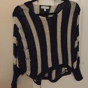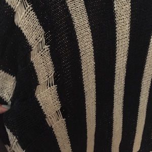 Navy blue and white striped knit sweater with stitching design fits s/m. Could wear off shoulder if preferred. Not free people, just labeled that for viewing purposes