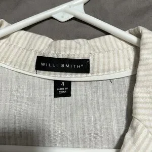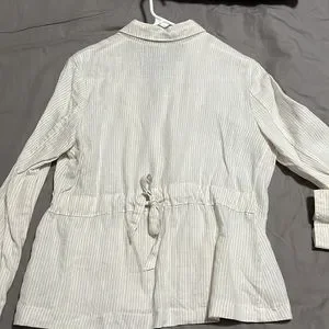 Stripes linen jacket with ties on the back.