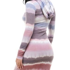 Stripe tie dye long sleeve hoodie Above the knee Dress fabric 63% rayon 33% poly 4% span Lavender multi